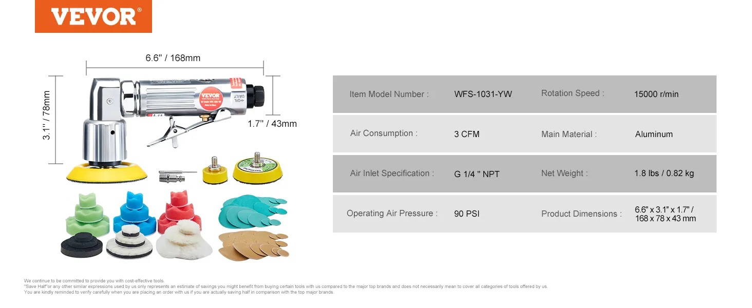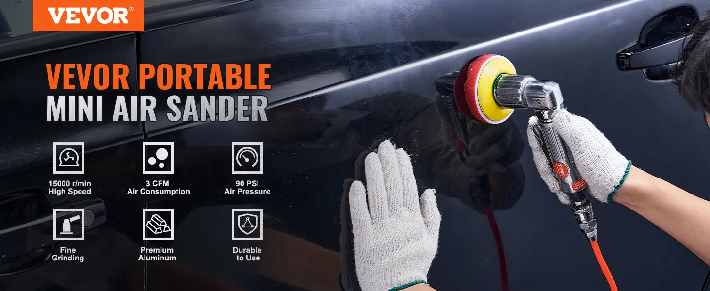The VEVOR random orbital air sander offers high performance & great value. Its 15000 RPM motor ensures efficient and smooth sanding. The tool's versatility makes it suitable for various tasks. Whether you're working on auto body work, fiberglass repairs, or paint jobs, this tool delivers excellent results. Its lightweight and durable design provides comfort and longevity. A comprehensive accessory set enhances its value! This tool is a cost-effective solution for high-quality sanding and polishing needs.