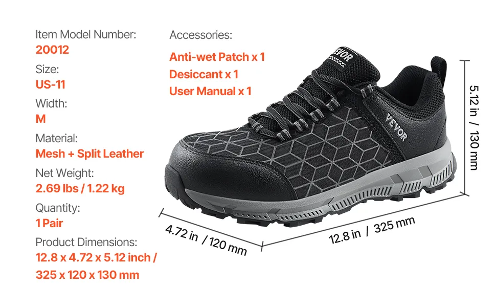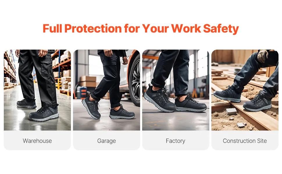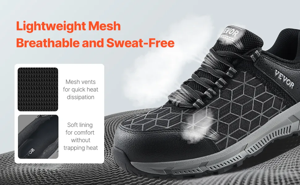 Lighter Weight: Compared to steel-toe shoes, our men steel toe sneakers use aluminum alloy for the toe cap, making them 26% lighter. The breathable mesh upper prevents discomfort from sweaty feet, while the soft rubber sole provides additional comfort. These shoes are perfect for construction workers who need to stand or walk for long hours on job sites.