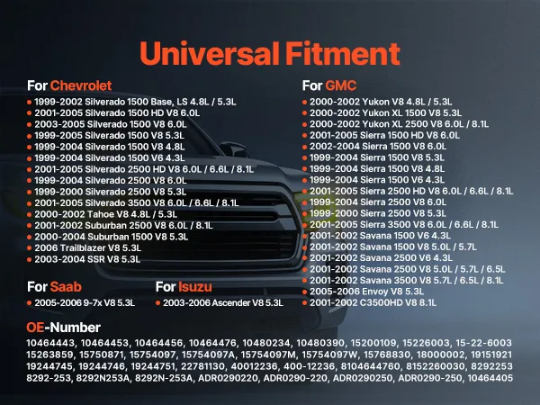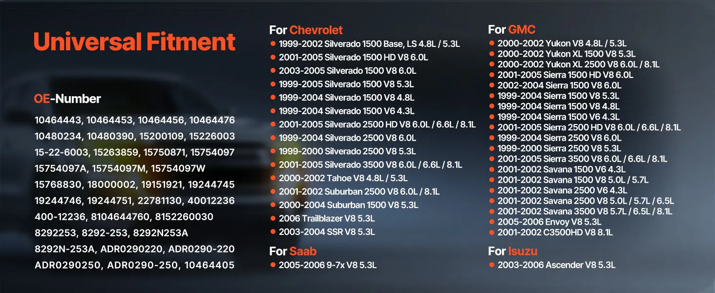 Vehicle Compatibility: Our alternator works great on pickups, sedans, and SUVs. It fits Chevrolet 1999-2004 Silverado 1500 V6 4.3L, Saab 2005-2006 9-7x V8 5.3L, and Isuzu 2003-2006 Ascender V8 5.3L. See images for more fitment details