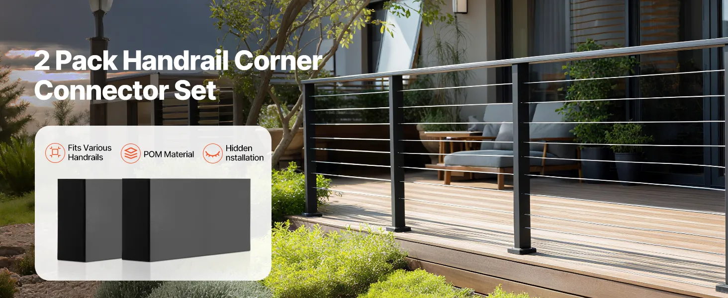 This universal connector fits 2 x 1 inch handrails. Made from high-quality POM, it’s scratch-resistant and impact-resistant. The hidden installation enhances stability and aesthetics, ideal for both indoor and outdoor use to create stylish handrails.
