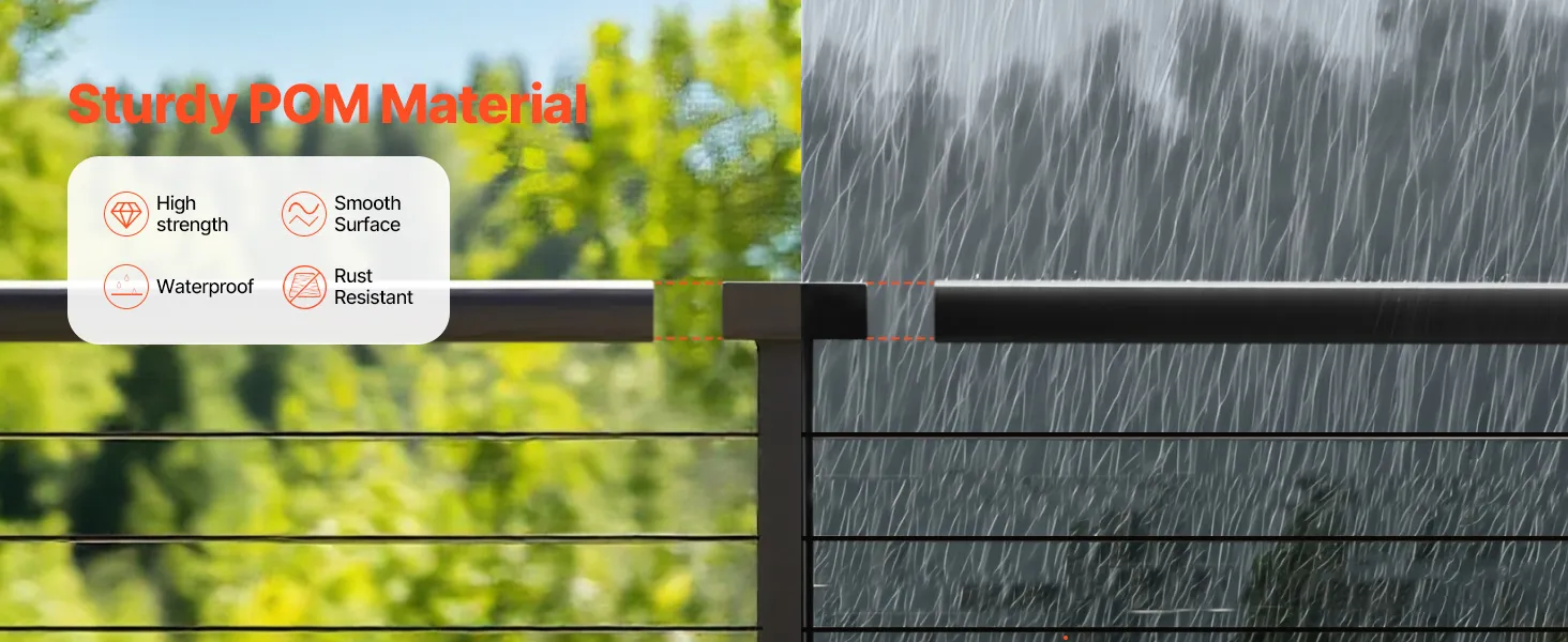 Made from high-strength POM, this connector is smooth, waterproof, and rust-resistant. It withstands harsh weather, offering long-lasting support and reliable protection for your handrails.