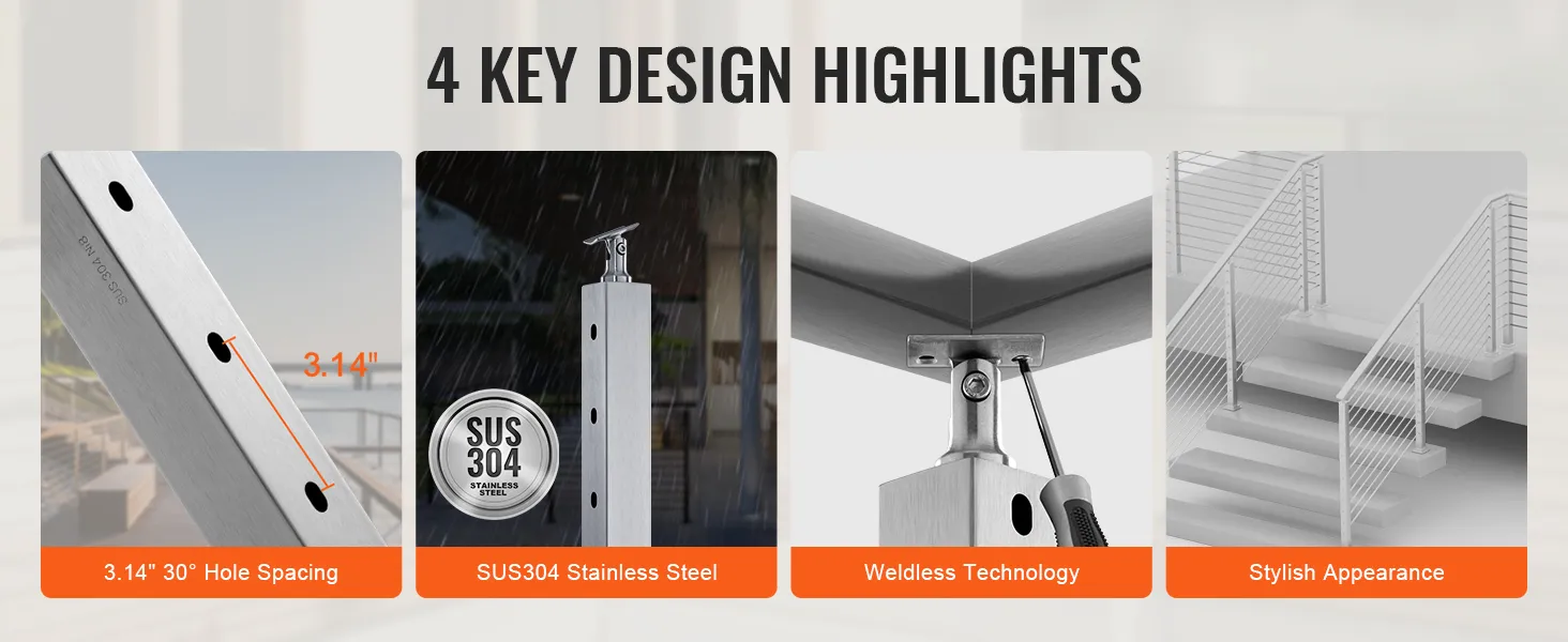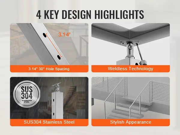 Sturdy and Durable: The cable handrail post is made of high-quality SUS304 stainless steel, providing excellent rust resistance and corrosion resistance, ensuring a long lifespan. However, we do not recommend it for coastal projects.