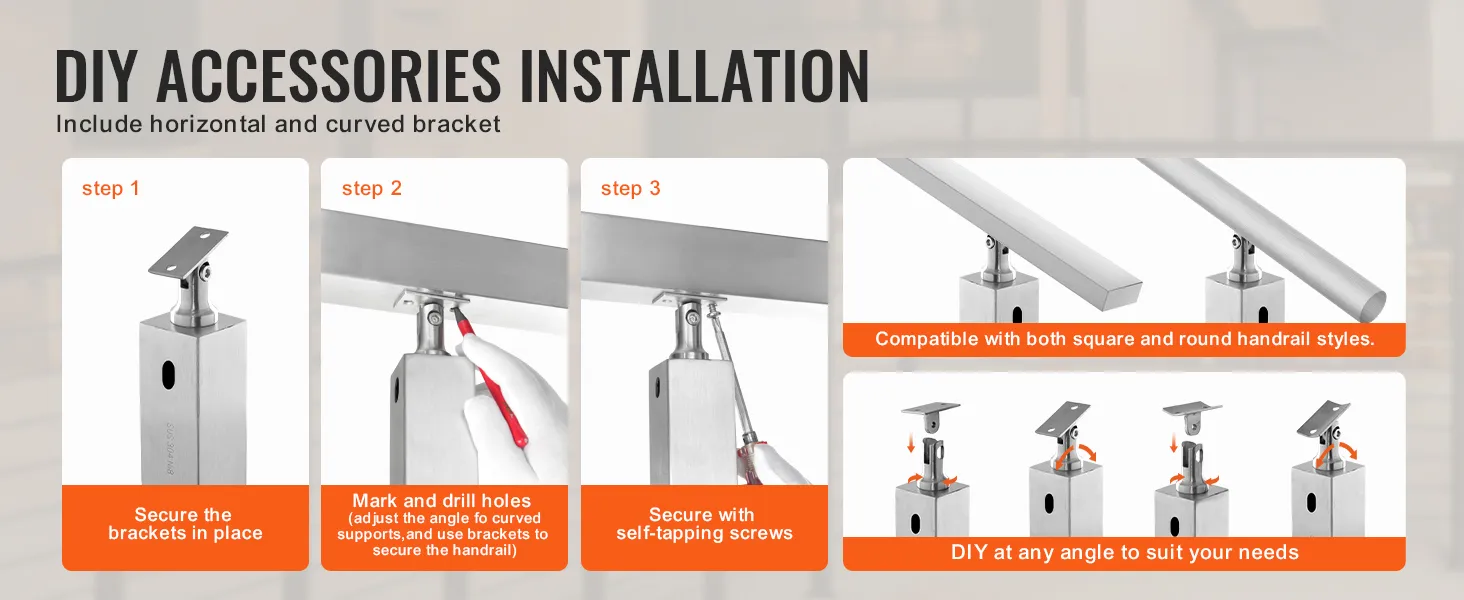 Our stair railing post comes with pre-drilled holes, eliminating the need for additional drilling during installation. You can easily adjust the angle and position during setup, aided by the included accessories, making the process labor-saving.