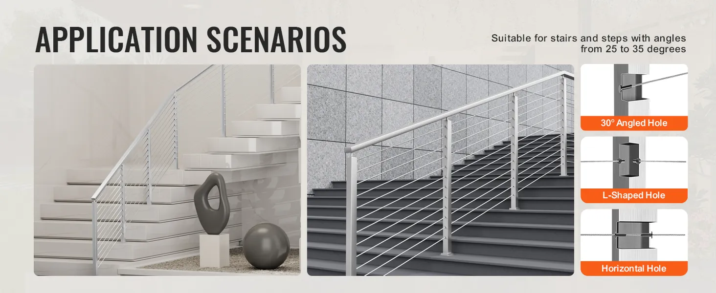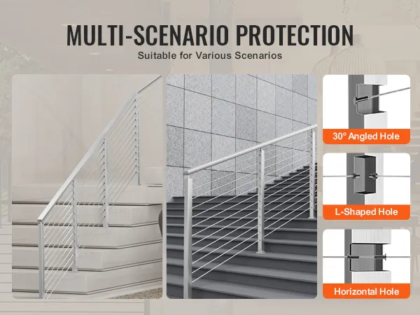 Versatile Protection: Our cable railing posts are suitable for both indoor and outdoor protection applications, such as stairs, steps, porches, fences, patios, balconies, gardens, residential buildings, commercial offices, hotels, garages, and more.