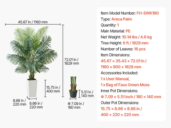 Multiple Size Options: Available in 4ft, 5ft, 6ft heights to suit different spaces and preferences. With a highly realistic appearance, these artificial tropical plants make a striking visual accent in living rooms, offices, or commercial spaces