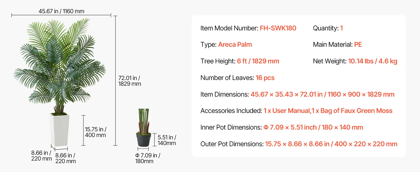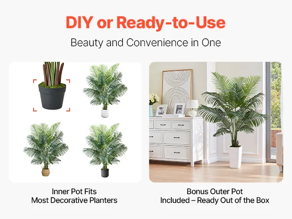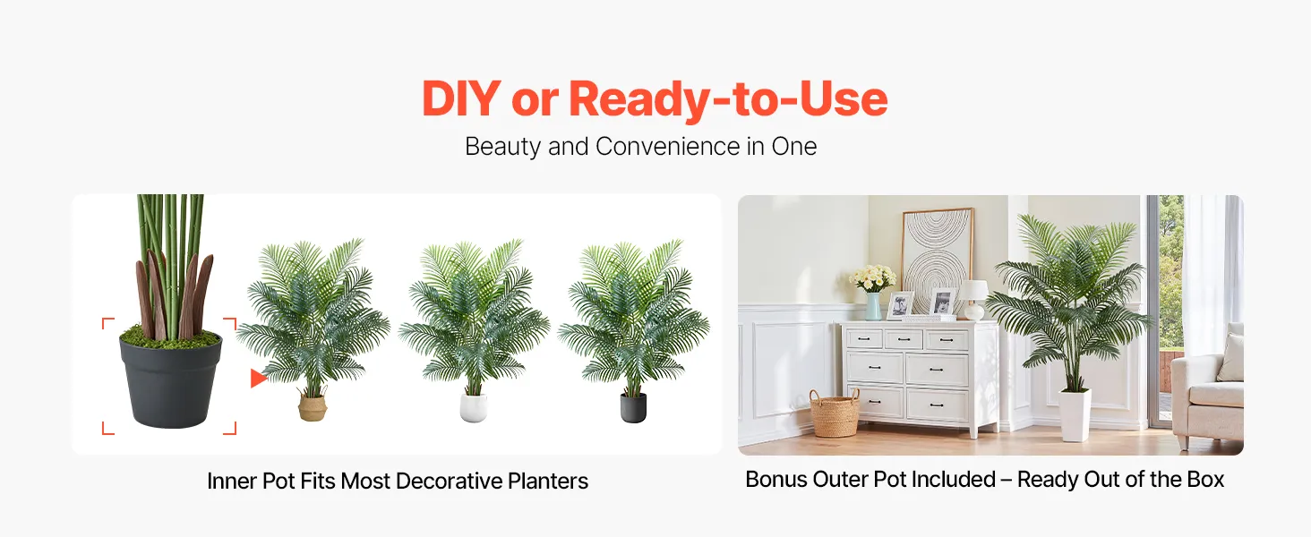 Customizable Decor: The planter base fits most decorative vases, letting you easily switch containers to match changing home themes. Refresh your space without changing your artificial tropical plants