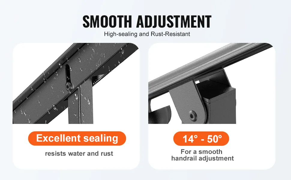 Crafted from premium materials, our handrails feature highly sealed connectors that is rustproof even in outdoor rain conditions. The smooth angle adjustment ensures versatility for various settings.
