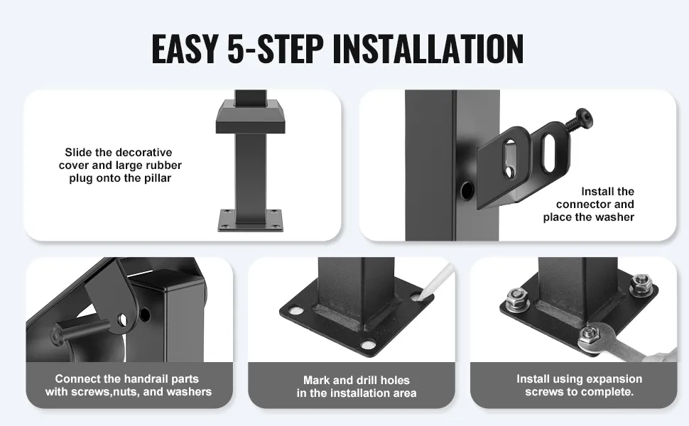 Easy Installation: Featuring stainless steel expansion bolts for double reinforcement, this handrail offers enhanced stability. The included manual guides you through the installation process, making it quick and straightforward.