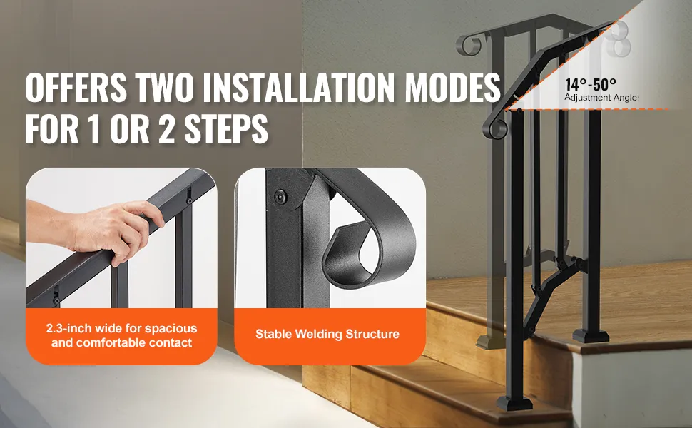 Suitable for 1-2 Step Levels: With an adjustable angle ranging from 5 to 40 degrees, this handrail is perfect for accommodating 1-2 step levels. It is ideal for various applications such as doorsteps, garage entrances, and garden railings, ensuring a versatile fit.
