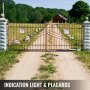 VEVOR electric gate opener on a rural driveway with placards and indication light.