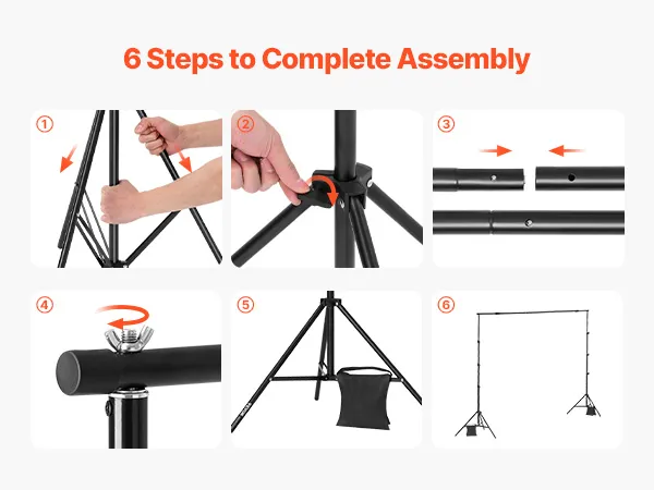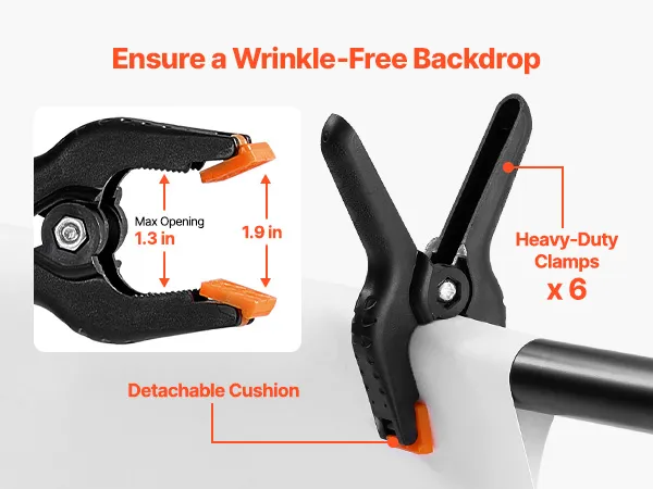 Heavy-Duty Support: This backdrop stand features a carbon steel base. The two tripod bases ensure stability, even when fully extended, and can hold various backdrops like paper, fabric, or canvas.