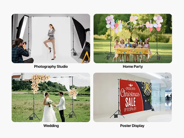 Multi-Purpose Use: Our background stand is ideal for studio photography, weddings, parties, product displays, and more, meeting all your background needs.