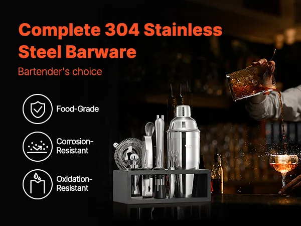 • Luxurious and Attractive: The bar tool set is made from 304 stainless steel with a brushed finish, delivering a premium look and feel. With fingerprint-proof features, the bar tools remain looking brand new after long-term use