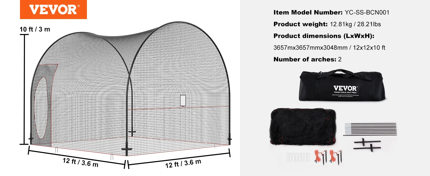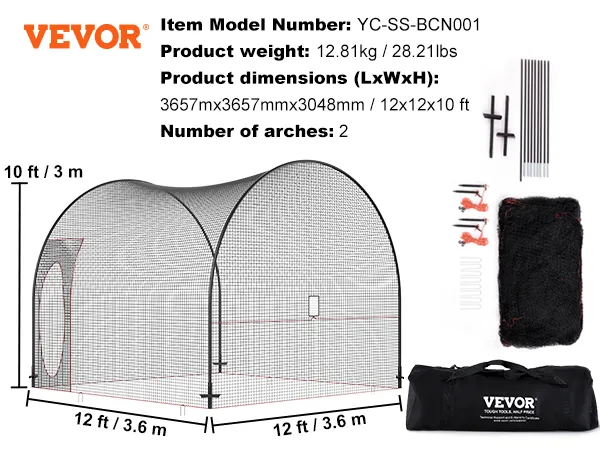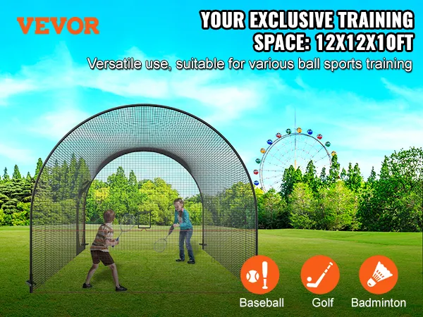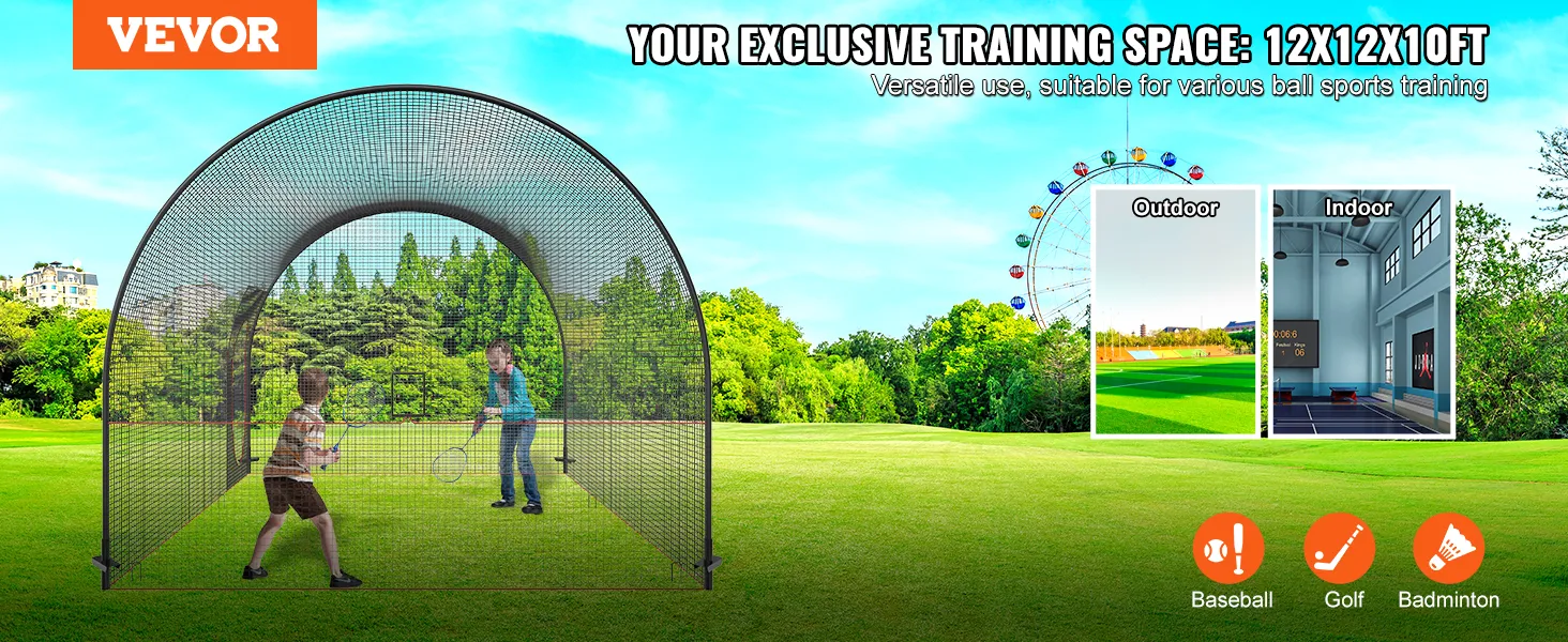 Durable, Large Batting Cage: This baseball batting cage, measuring 12x12x10ft, is the perfect training ground for every sports enthusiast, physical trainer, and professional coach. Its fully enclosed design eliminates worries about balls flying far during training, making it suitable for both indoor and outdoor use. A high-quality baseball batting cage is an excellent choice for baseball and softball training equipment.