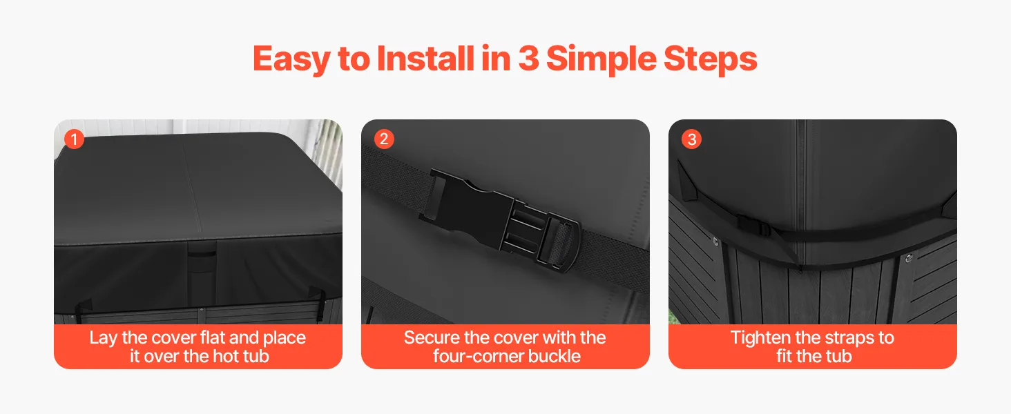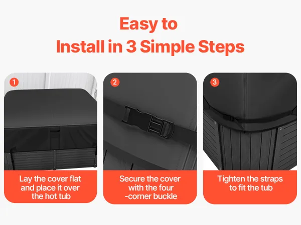 Easy to Install: No complicated installation steps or specialized skills are required. The hot tub lid installation process is simple, and even one person can easily and quickly complete the installation and disassembly, saving you time and effort