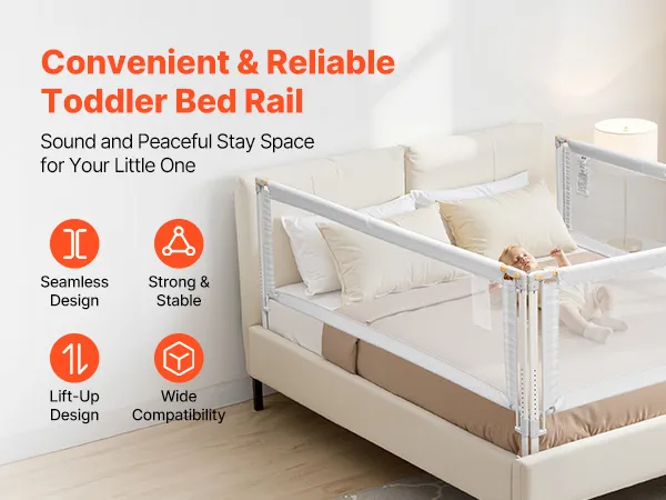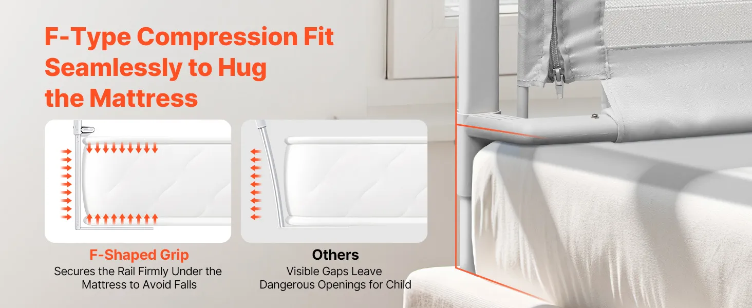 Secure & Comfortable: This toddler bed rail is designed with details so your little one stays soundly. A F-shaped compression bar leaves no gap between mattress and rail to avoid entrapment. The effective guard height is 24.41 in / 620 mm to meet your needs