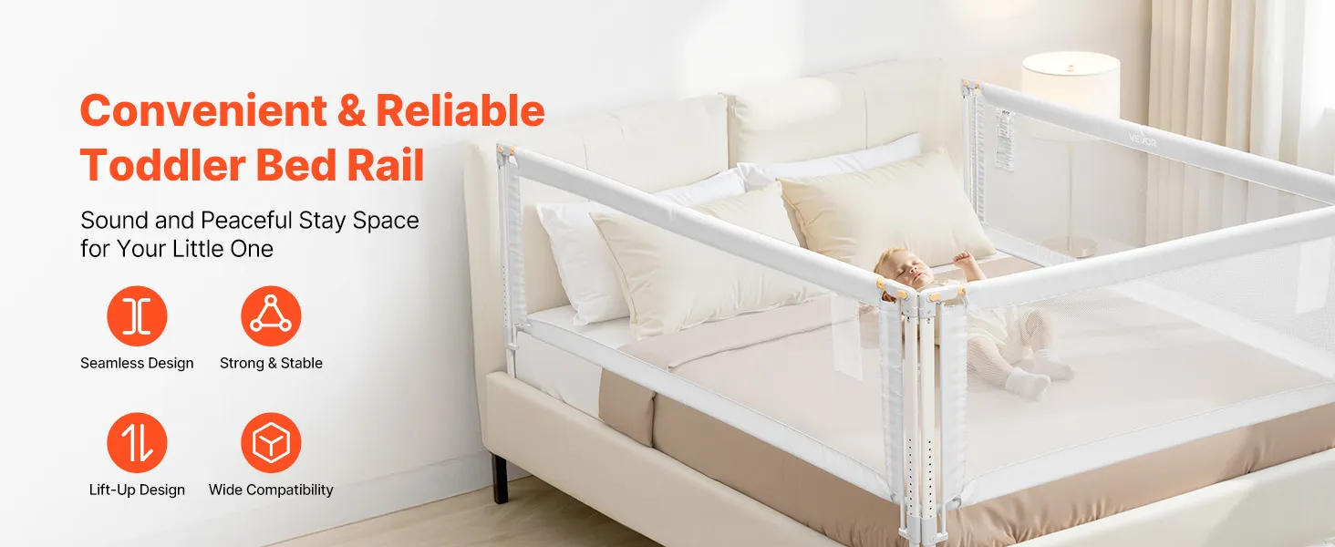 Strong & Stable: Built with thick, heavy-duty steel tubing, this bed rail is stable and deformation-resistant. The structure locks firmly against the mattress, preventing shifting or being pushed over—creating a secure environment for play and stay alike