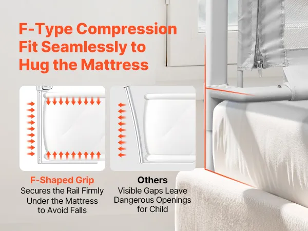 Secure & Comfortable: This toddler bed rail is designed with details so your little one stays soundly. A F-shaped compression bar leaves no gap between mattress and rail to avoid entrapment. The effective guard height is 24.41 in / 620 mm to meet your needs