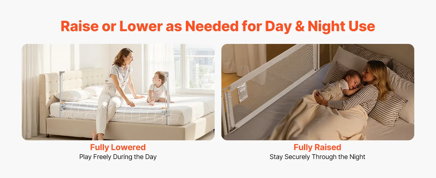 Strong & Stable: Built with thick, heavy-duty steel tubing, this bed rail is stable and deformation-resistant. The structure locks firmly against the mattress, preventing shifting or being pushed over—creating a secure environment for play and stay alike