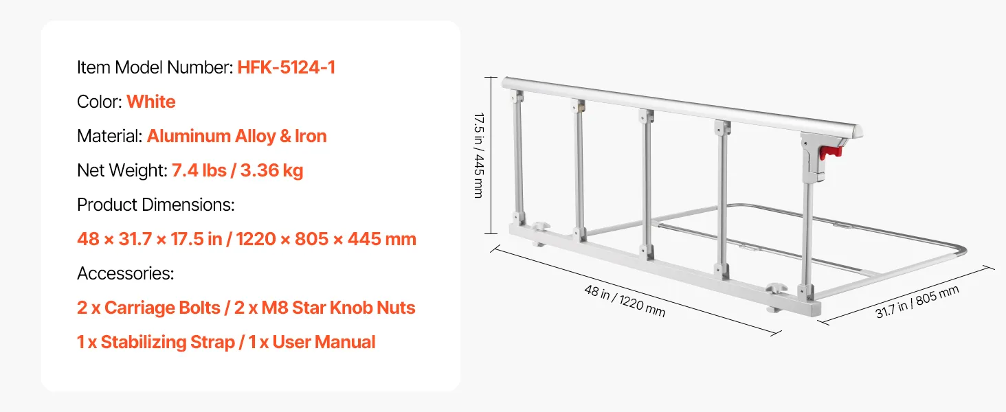 Foldable Design: When not in use, press the red button to fold the rail down. This design won’t interfere with getting in or out of bed and reduces bumps or trips. Fits double, queen, and king beds with 7–13 in / 178-330 mm mattresses. Not for electric beds