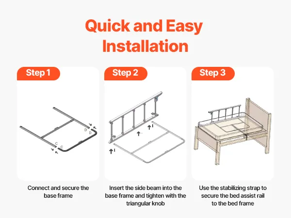 The bed assist rail is simple to set up—no complex tools or professional skills required, allowing users to install it quickly and effortlessly.