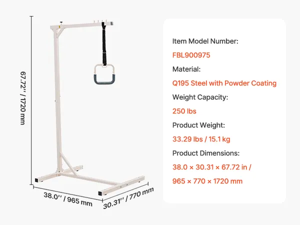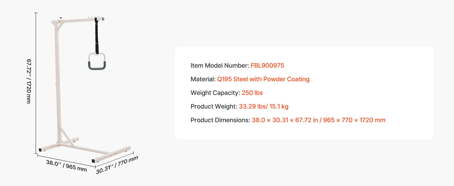 Reliable Mobility Aid: Ideal for seniors, disabled, pregnant women, and those with limited mobility, this free standing trapeze bar enables safe transfers to a wheelchair or helps with getting in and out of bed independently. It also can function as a workout tool to strengthen upper body and promote recovery, helping them live more independently and confidently.