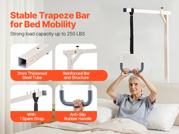 VEVOR Trapeze Bar for Bed Mobility, Heavy-Duty Steel Free Standing Trapeze Bar 250 LBS Weight Capacity, Hospital Bed Pull Up Assist for Elderly & Disabled, Ideal for Hospitals, Nursing Home, Home Care