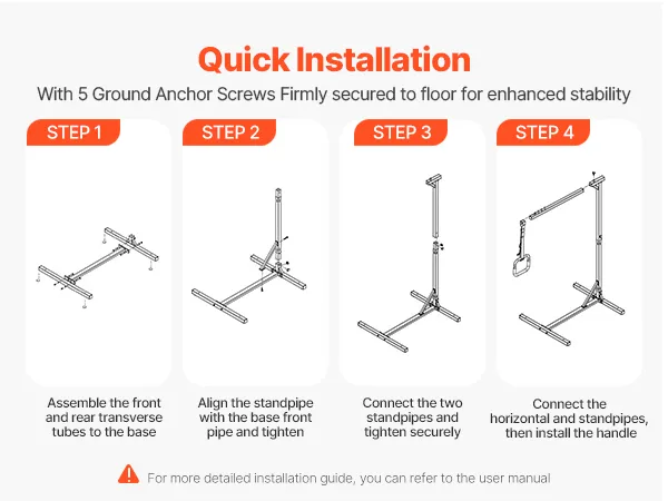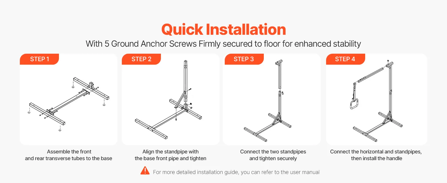 Easy to Install: Our bed trapeze for elderly is easy to install and comes with a set of assembly hardware for a hassle-free setup. The base features 4 screw holes, and with the provided ground anchor screws, it can be securely mounted to the floor, ensuring enhanced stability and safety, preventing wobbling during use.