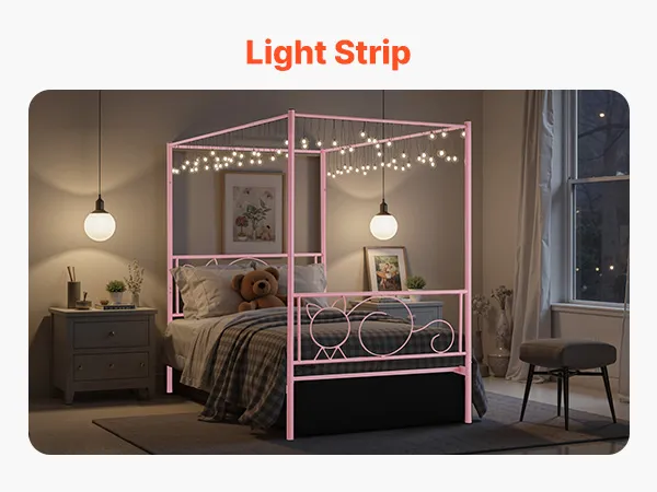 DIY Customization: The canopy rails and posts allow you to easily hang string lights, decorations, and curtains to create a personalized bedroom space