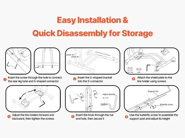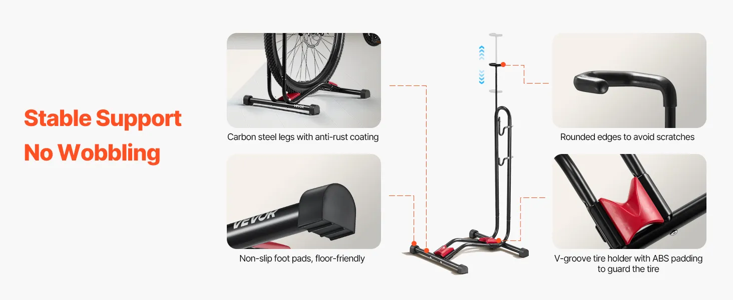 Stable and Secure: The bottom tire holder has a V-shaped groove made from ABS material, which helps avoid scratches and holds your bike firmly in place without wobbling