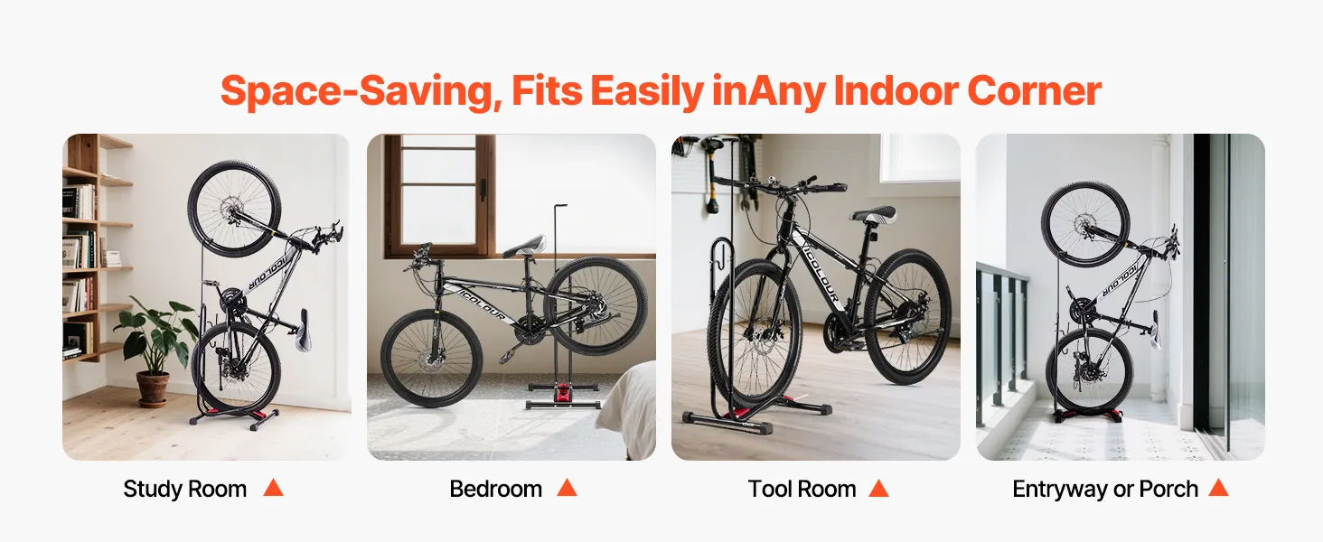 Space-Saving: No more bike clutter or misplaced rides! Wherever you set it up, this freestanding bike rack stores and displays your bike securely, brightening up your space and keeping it neat and tidy