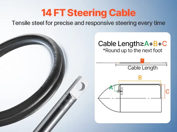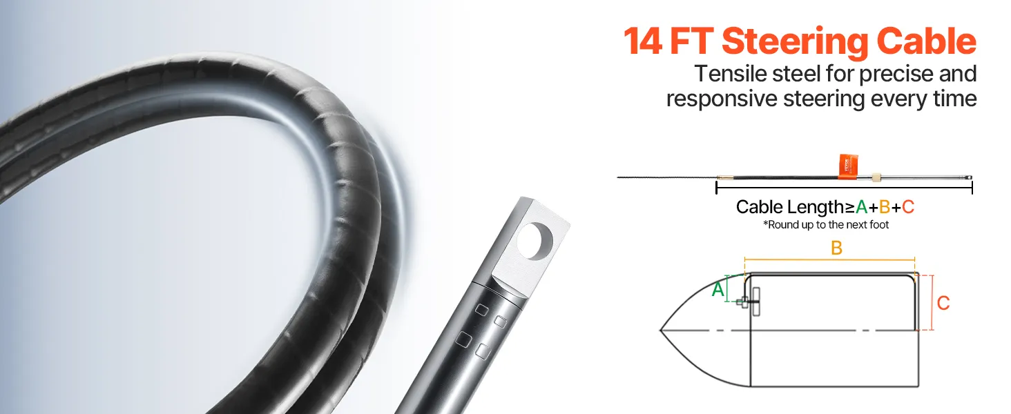 14 Feet Steering Cable: Our marine flat steering design allows for a firmer control that outshines the competition. And the steering cable meets the precise steering requirements of different types of rudders and cylinders. Please verify if the cable length matches your application.