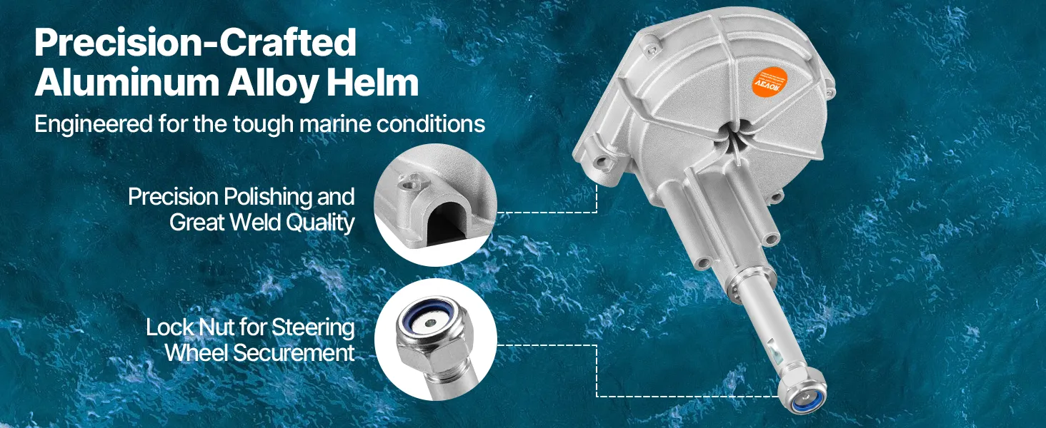 Durable & Robust Rotary Helm: Characterized by its premium alloy material, the rotary helm is rust-proof and resistant to wear. Heavy-duty material ensures longevity and easy maintenance. Adjustable nuts are used to secure the rudder and wheels.