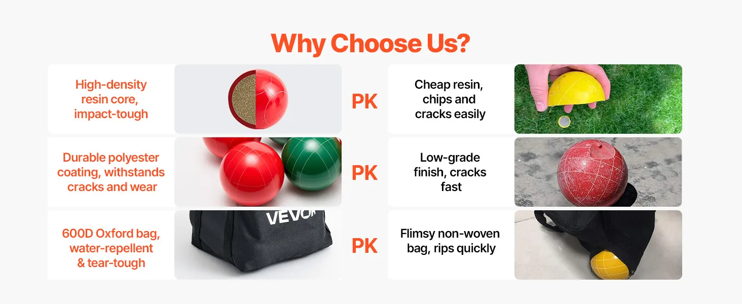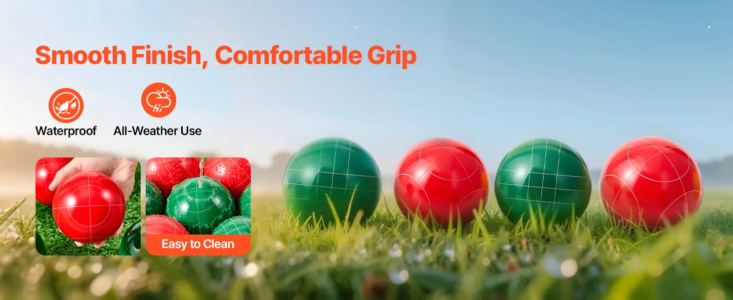 Premium Resin Construction: Crafted from long-lasting, crack-proof resin, this bocce ball game set features a smooth finish for a comfortable grip and enhanced gameplay that lasts season after season