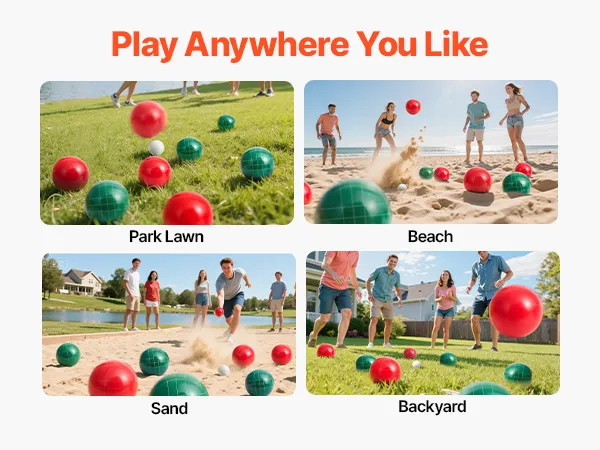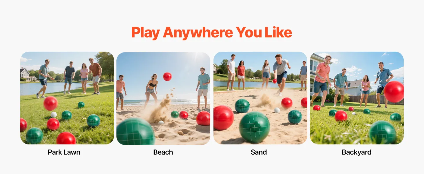 Play Anywhere Outdoors: The bocce set is great for lawn, sand, beach, or backyard. Bring it along for camping, picnics, BBQs, or any outdoor get-together—it adds instant fun to any setting