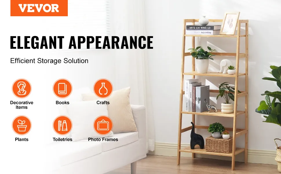 VEVOR 4-Tier Bamboo Ladder Shelf, Trapezoid Open Bookcase, Display Storage Rack Organizer, Freestanding Flower Plant Stand, Ladder Bookshelf Ideal for Bathroom, Bedroom, Office, Study, Natural VEVOR 4-Tier Bamboo Ladder Shelf, Trapezoid Open Bookcase, Display Storage Rack Organizer, Freestanding Flower Plant Stand, Ladder Bookshelf Ideal for Bathroom, Bedroom, Office, Study, Natural