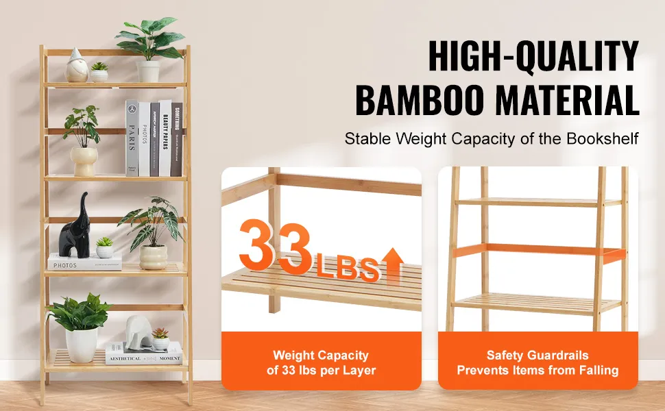 • Sturdy & Durable: Made from 100% pure bamboo, this ladder bookshelf wood is not only sturdy and durable, but each shelf can support up to 33 lbs, ensuring your precious items are safe and secure, standing the test of time.