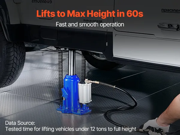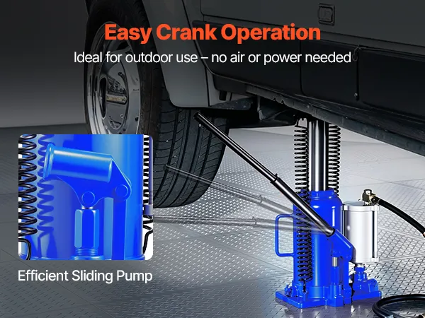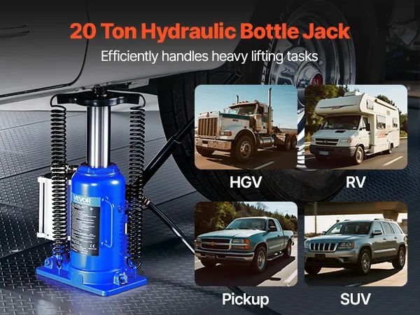 Heavy Lifting: With a lifting capacity of up to 20 tons (44,092 lbs), this hydraulic bottle jack handles box trucks, RVs, pickups, and SUVs with ease—great for tire changes and quick inspections