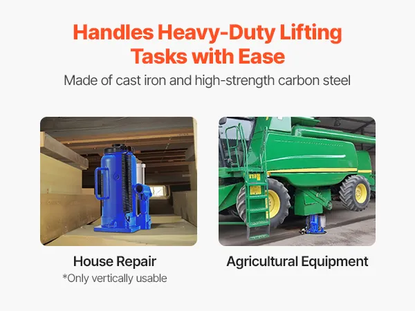 Wide Application: Built with strong cast iron and carbon steel, this heavy duty jack handles heavy farm gear and construction equipment. It works even in extreme heat or cold—no oil freeze, no swollen seals, just dependable performance