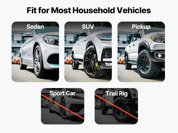 Stable Lifting: Our hydraulic bottle jack handles 10 tons (22,046 lbs), great for sedans, pickups, SUVs, and small towable RVs. It works on farm tools and compact machines. For safe lifting, choose a 10-ton jack if your vehicle weighs 6 tons or less