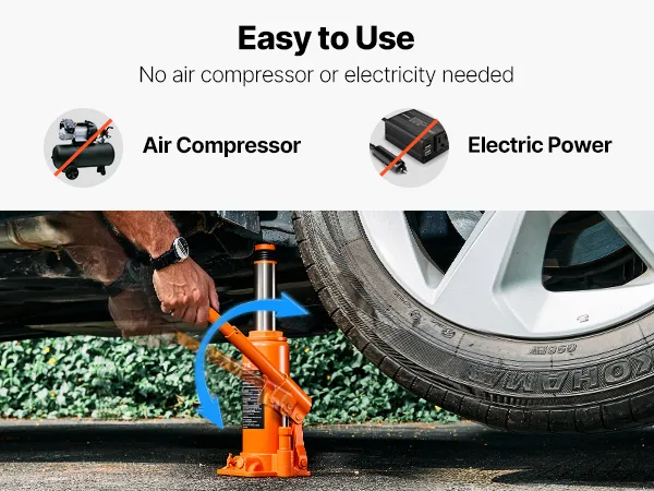 Compact & Portable: Compact and lightweight, this heavy duty jack fits easily in your trunk or garage. Ready to work anytime, anywhere—no compressor or electricity required