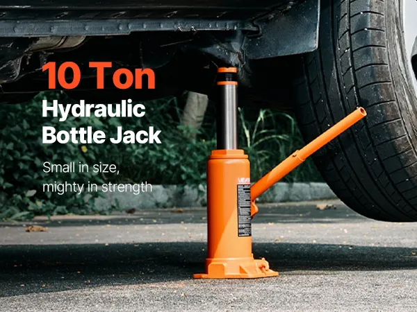 This hydraulic bottle jack uses manual pumping to lift up to 10 tons (22,046 lbs) with steady force—no electricity or air needed. It's a solid pick for heavy-duty jobs around the home, garage, or driveway.