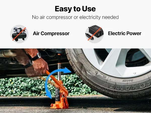 Compact & Portable: Compact and lightweight, this heavy duty jack fits easily in your trunk or garage. Ready to work anytime, anywhere—no compressor or electricity required