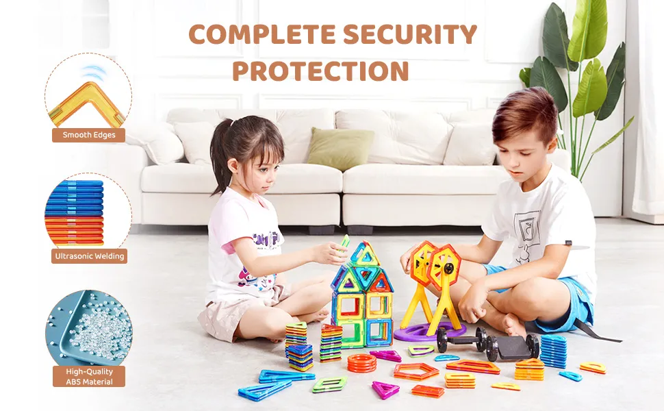 Made from high-quality ABS material, these magnetic building tiles are safe and durable. With no adhesives, they're health-friendly and innocuous. The smooth surfaces and rounded edges ensure safe play, so kids can have fun without worry.