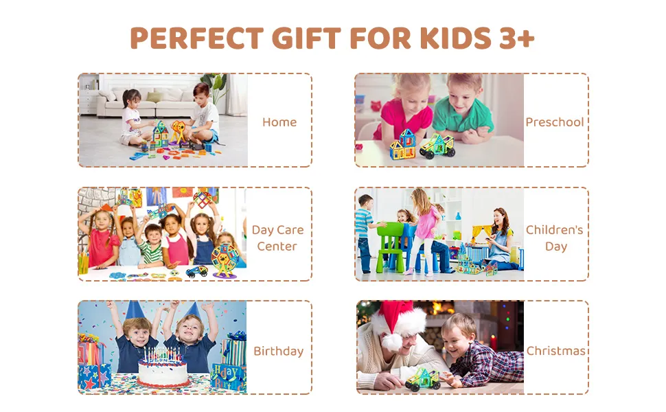 Perfect Gift Idea: Great for indoor fun, travel (like camping), and classrooms, this kids magnetic tiles set is a fantastic gift for Children's Day, birthdays, and Christmas! Ideal for children ages 3 and up, it's a wonderful way to create lasting memories with family and friends.