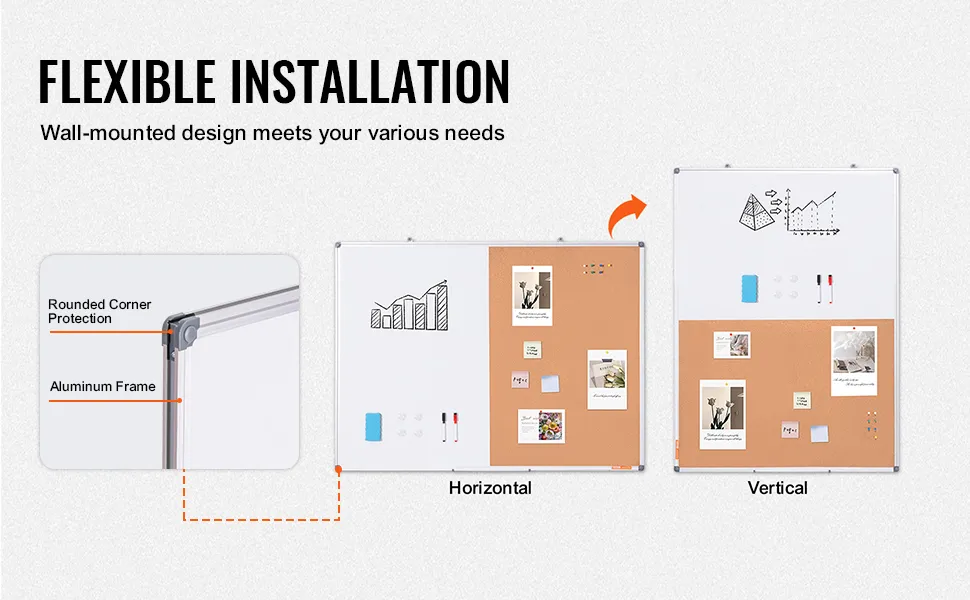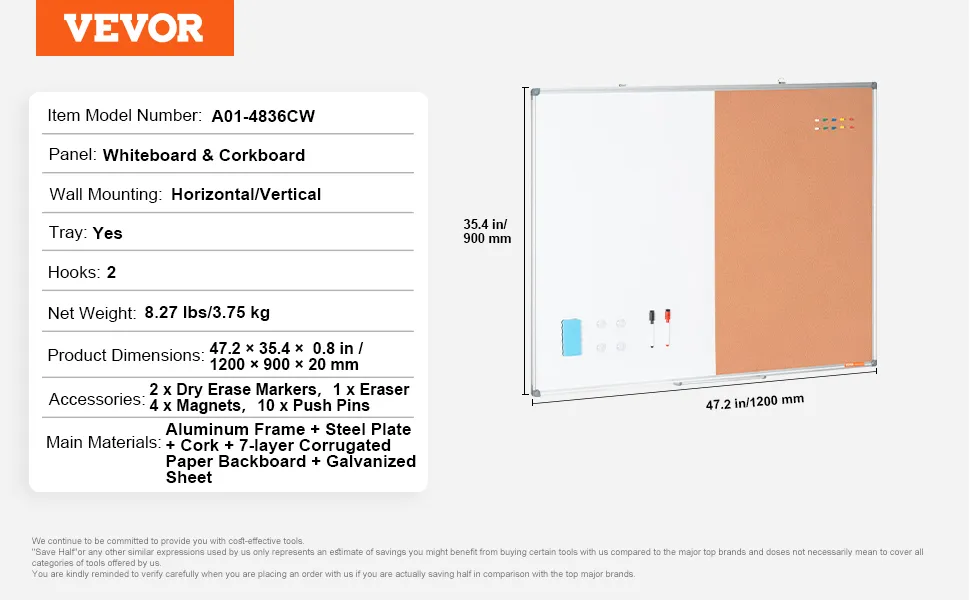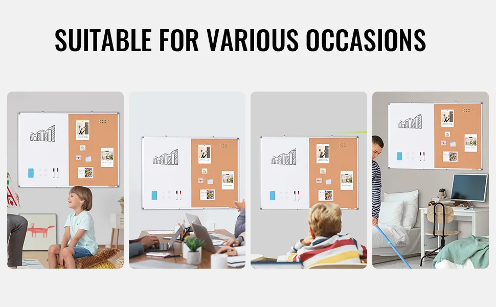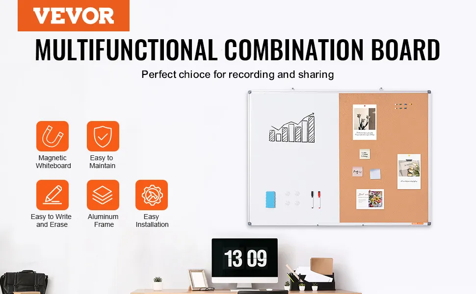 VEVOR 48"x 36" Whiteboard & Cork Board Combo with Aluminum Frame – 2-in-1 Magnetic Dry Erase Bulletin Board for Wall Mount – Ideal for School, Home, Office VEVOR 48"x 36" Whiteboard & Cork Board Combo with Aluminum Frame – 2-in-1 Magnetic Dry Erase Bulletin Board for Wall Mount – Ideal for School, Home, Office