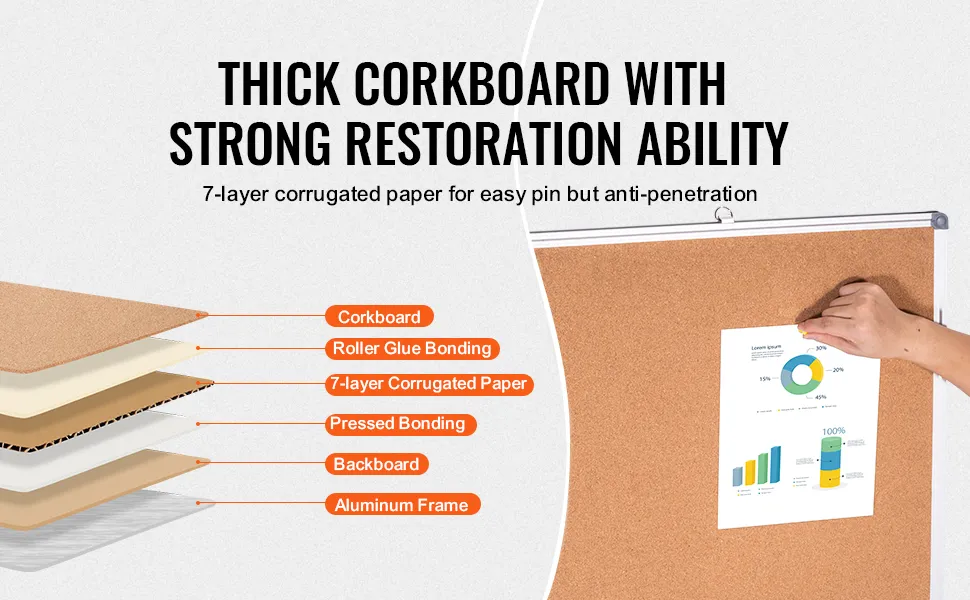 The cork area is upgraded with 7 layers of corrugated paper, reinforced to prevent bulging and ensure a sleek appearance. The aluminum frame has rounded edges and is securely assembled with screws.