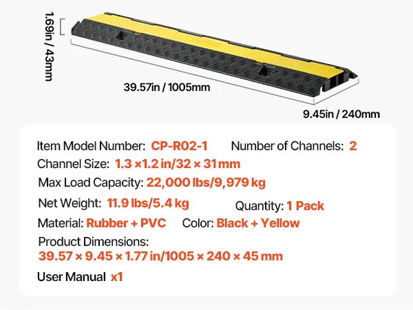 VEVOR Cable Protector Ramp, 22,000 lbs/axle Capacity, 2 Channel Heavy Duty Rubber Cord Hose Wire Cover, 1.3 x 1.2 in Channel, Traffic Speed Bump with Flip-Open Top Cover, for Indoor Outdoor, 1 Pack VEVOR Cable Protector Ramp, 22,000 lbs/axle Capacity, 2 Channel Heavy Duty Rubber Cord Hose Wire Cover, 1.3 x 1.2 in Channel, Traffic Speed Bump with Flip-Open Top Cover, for Indoor Outdoor, 1 Pack