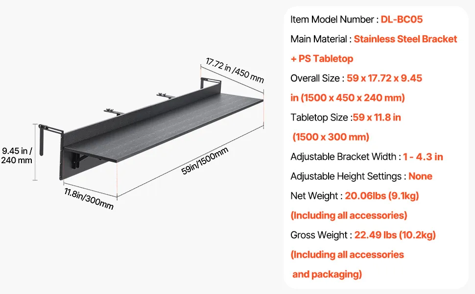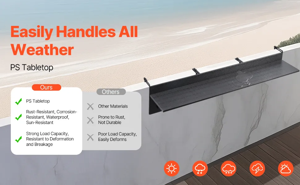 Durable & Rust-Resistant: Crafted with a PS tabletop, premium paint coating, and stainless steel brackets, this balcony railing table is built to resist rust and corrosion. It’s designed to withstand various weather conditions, ensuring reliable performance for long-term outdoor use.