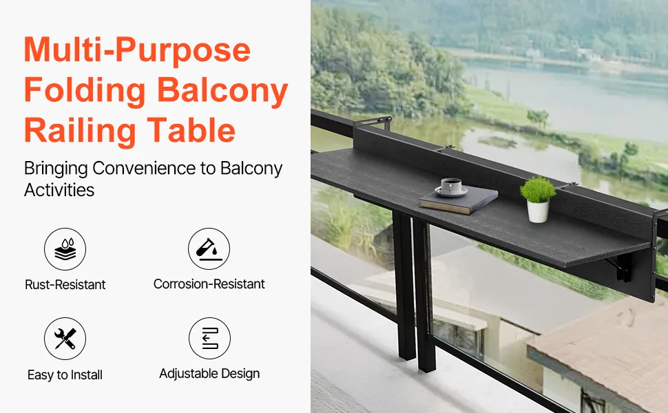 Versatile and Convenient: This folding balcony table offers exceptional flexibility, making it ideal for a variety of activities on your balcony. Use it for dining, working, enjoying the view, or displaying plants, and enhance your outdoor experience with this multi-functional piece.